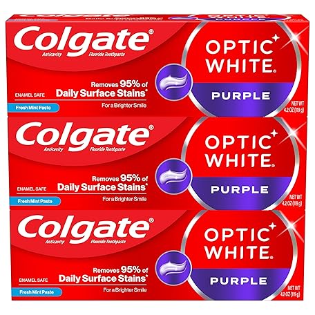 Thông tin sản phẩm Colgate Optic White Purple Toothpaste for Whitening, Enamel-Safe Mint, 3 Pack, 4.2 oz