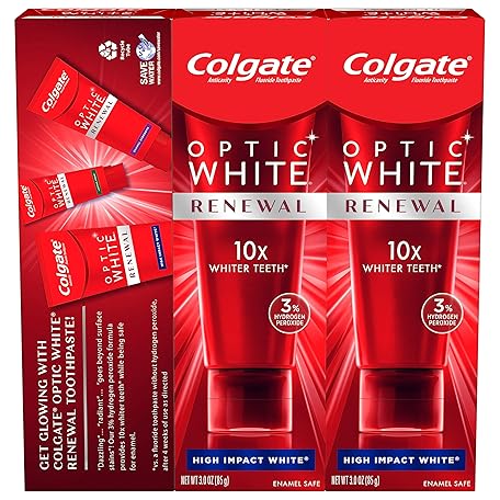 Sản phẩm Colgate Optic White Renewal Teeth Whitening Toothpaste, High Impact White, 3 Oz Tube, 3 Pack đang được bán với giá ưu đãi là $18.5191 tại nước Mỹ.