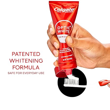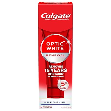 Thông tin sản phẩm Colgate Optic White Renewal Teeth Whitening Toothpaste, Whitening Fluoride Toothpaste, Effectively Removes Tea, Coffee, and Wine Stains, Made with Hydrogen Peroxide, High Impact White, 3.0 oz