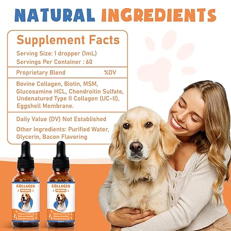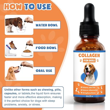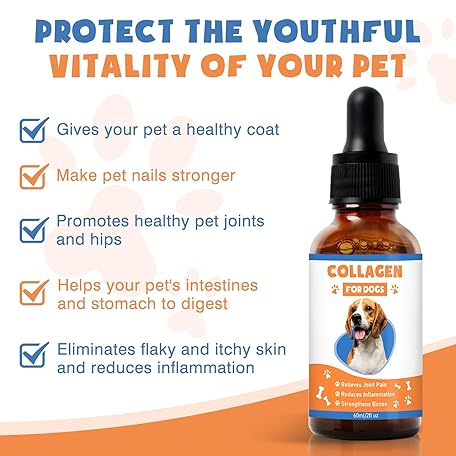Collagen for Dogs,4.22oz (120ml) Liquid Collagen for Dogs,Enhances Joint Support,Flexibility,Cartilage and Mobility,Relieves Itching in Allergic,Liquid Drops Suitable for Cats and No Side Effects