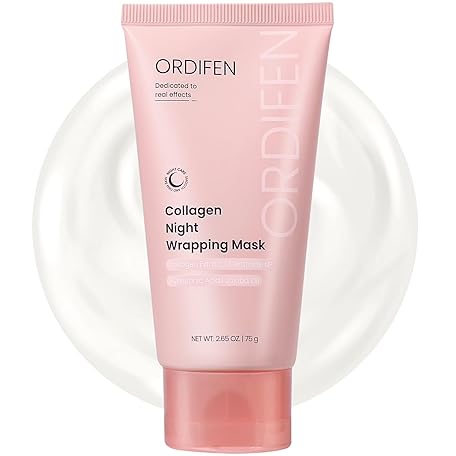 Collagen Night Wrapping Mask for Glowing Skin, Collagen Overnight Wrapping Peel Off Facial Mask for Elasticity Hydration, Reduce Sagging Dullness, 2.65 fl.oz, Pink(Brush Included)