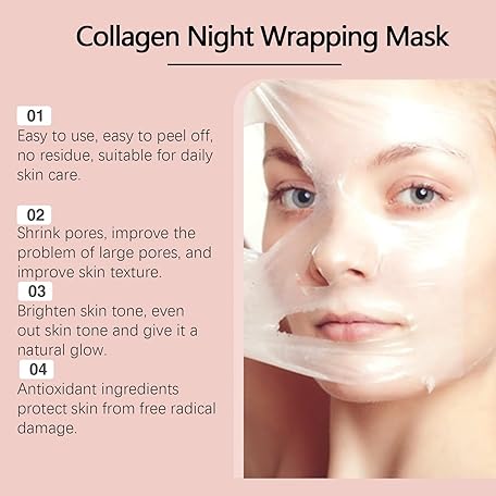 Collagen Overnight Wrapping Peel Off Facial Mask Pack,Hydrates and Tightens Skin,Reduces Sagging,Elasticity & Hydration Care with Brush 2.54 fl.oz