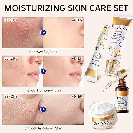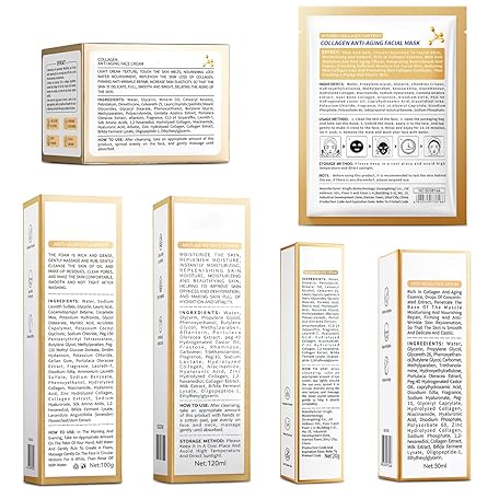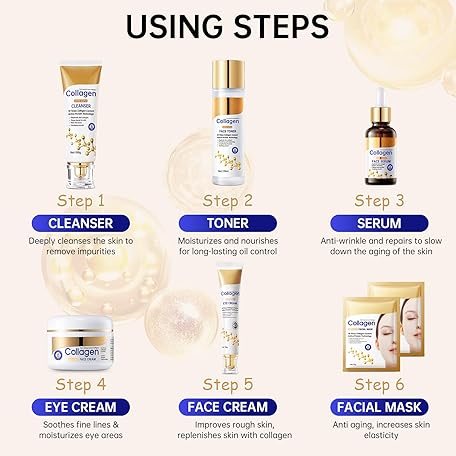 Collagen Skin Care Set, Anti Aging Skincare Set for Wrinkles & Fine Lines, Shrink Pores, Hydrate & Firm Skin, 7 Pcs Skincare Kits for Women with Cleanser, Toner, Serum, Cream, Eye Cream, 2 Pcs Masks.