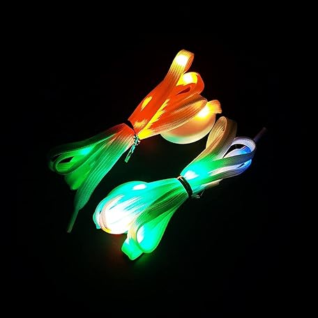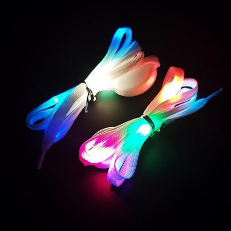 • Colorsheng 1 Pairs 47'' LED White Shoelaces Light Up Shoe laces 7 Colors Flashing 3 Modes Shoestrings