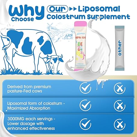 Thông tin sản phẩm Colostrum Supplement Powder - Grass Fed Bovine Colostrum with 60% IgG, Hyaluronic Acid, Zinc & Biotin | Supports Gut Health, Immune System, Beauty & Hair Growth | Unflavored, 50 Servings Packets