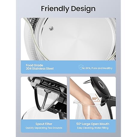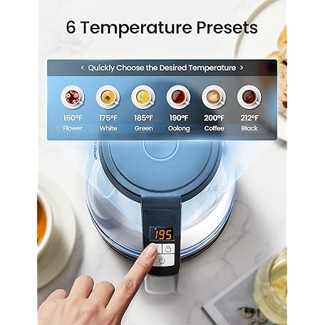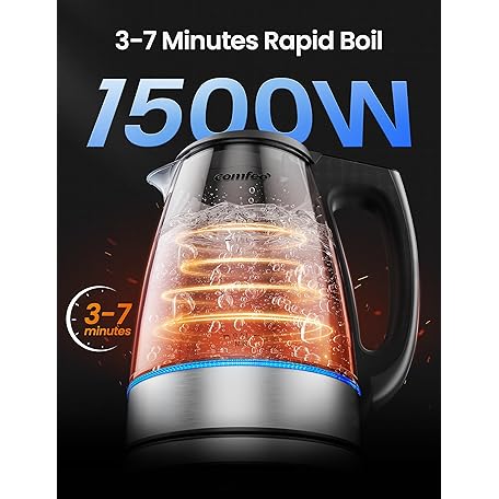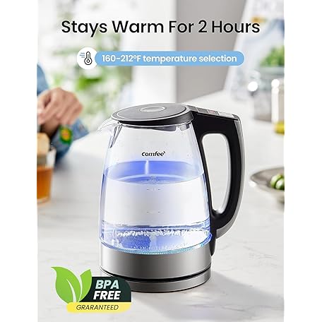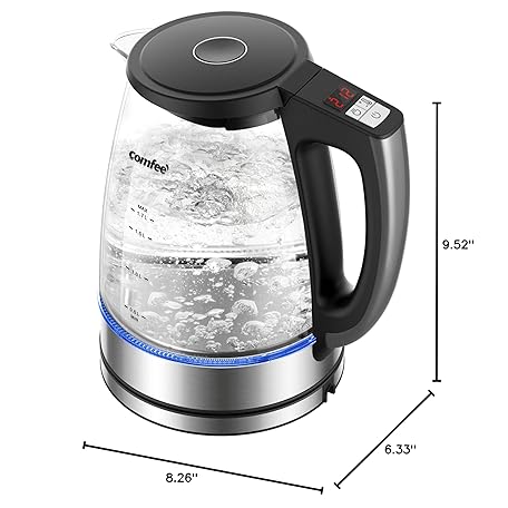 Thông tin sản phẩm COMFEE' 1.7L Glass Tea Kettle and Kettle Water Boiler - Electric Kettle Temperature Control with 6 Presets, 2-Hr Keep Warm, Fast Heating, 304 Stainless Steel, Auto-Off and Boil-Dry Protection