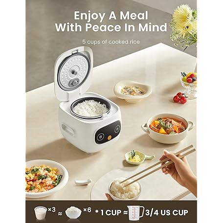 Thông tin sản phẩm COMFEE' Mini Rice Cooker 4 Cups Cooked/2 Cups Uncooked, Portable Non-Stick rice maker, 24 hours Timer Delay, 6 Functions, Fast Cooker, Brown Rice, Oatmeal, White