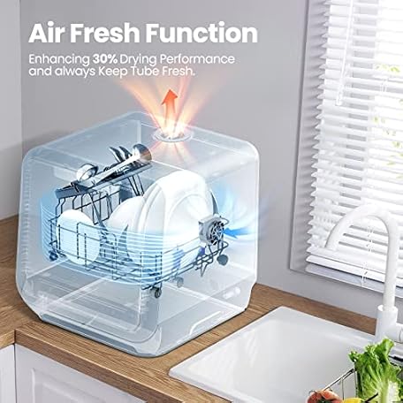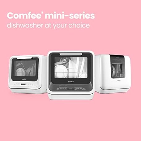 Thông tin sản phẩm COMFEE' Portable Mini Dishwasher Countertop with 5L Built-in Water Tank for Apartments& RVs, No Hookup Needed, 6 Programs, 360° Dual Spray, 162℉ High-Temp& Air-Dry Function