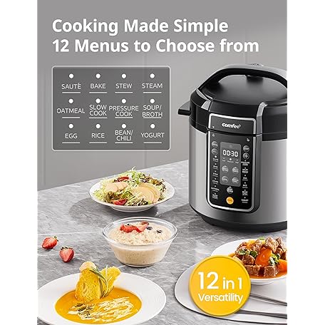 Thương hiệu COMFEE' là cái tên nổi tiếng được rất nhiều khách hàng trên thế giới chọn lựa. Với kiểu dáng đẹp mắt, sang trọng, sản phẩm COMFEE’ Pressure Cooker 6 Quart with 13 Cooking Functions, Olla de Presion Non-Stick Pot Yogurt Maker Rice Cooker Slow Cooker Sauté Steamer, Healthy Ceramic Inner Pot là sự lựa chọn hoàn hảo nếu bạn đang tìm mua một món cho riêng mình.