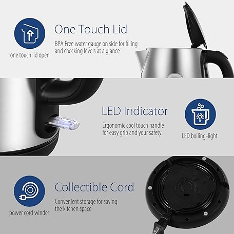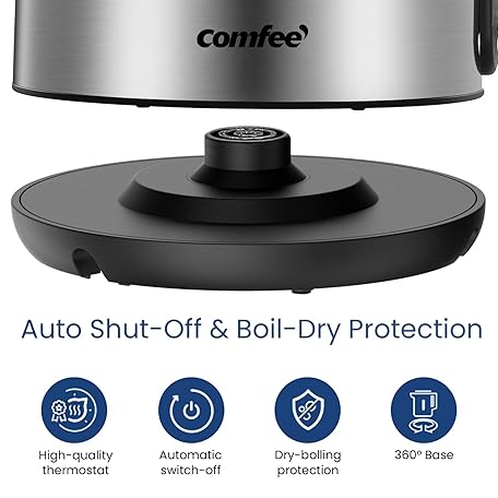 Thông tin sản phẩm COMFEE' Stainless Steel Electric Kettle, 1.7 Liter Tea Kettle Electric & Hot Water Kettle, 1500W Fast Boil with LED Light, Auto Shut-Off and Boil-Dry Protection