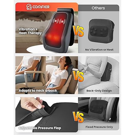 COMFIER Back Massager with Heat, Deep Tissue Shiatsu Neck and Back Massager for Pain Relief, Chair Use Massager Pillow with Adjustable Flap, Ideal Gift for Women Men