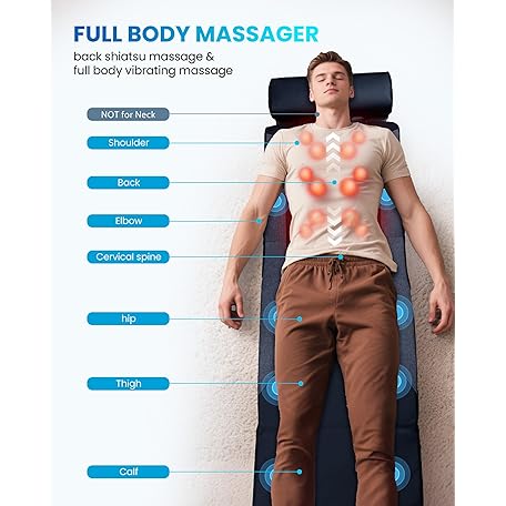 COMFIER Shiatsu Full Body Massage Mat with Heat, Back Massage Pad for Pain Relief Deep Tissue Kneading & Vibration Heating Chair Massager for Recliner, Sofa, Bed, Christmas Gifts for Men Women