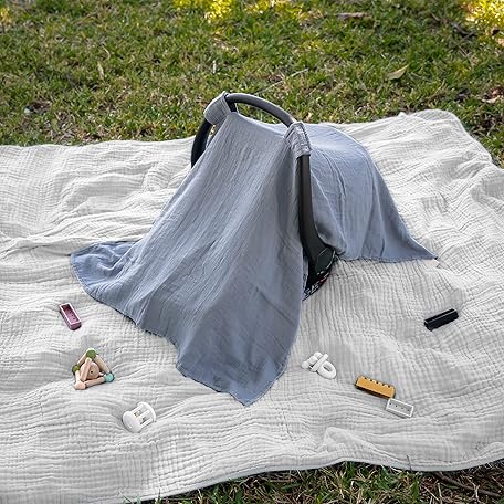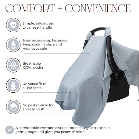 Thông tin sản phẩm Comfy Cubs Baby Car Seat Cover - Soft, Breathable Bamboo Rayon and Muslin Cotton Blend - Lightweight Canopy for Sun, Bug, and Comfort Protection - Large Size Infant Seat Cover in Pacific Blue Design