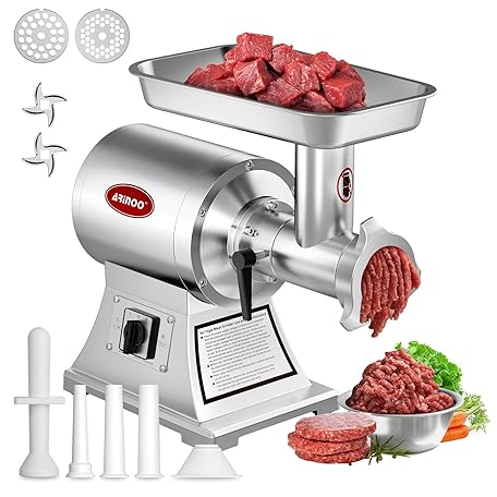 Commercial Meat Grinder #8C, 0.6HP Heavy Duty Stainless Steel Industrial Meat Mincer w/2 Blades & Meat Pusher,Electric Meat Grinders for large batches home butchering, or small farm processing