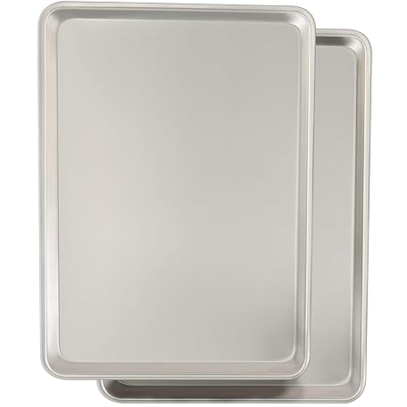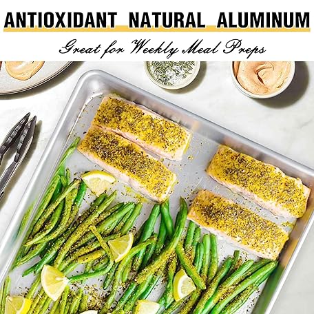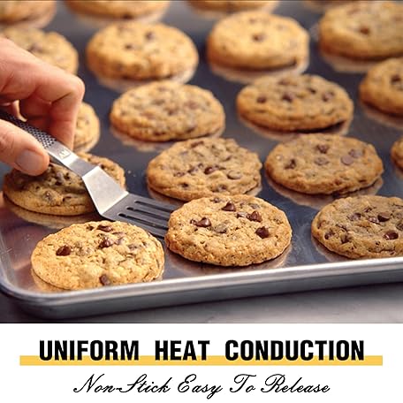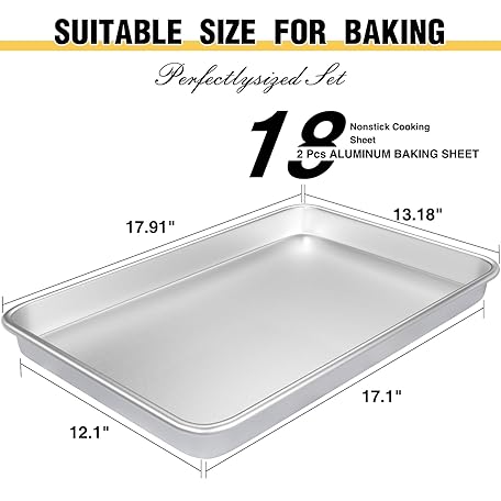 Thông tin sản phẩm Commercial Quality Baking Sheet Pan Set, Natural Aluminum Cookie Sheet, Umite Chef Warp Resistant Baker's Half Sheet Pan, Large Thick Cookie Tray Pans for Baking, Roasting(2 Pack, 18X13In)