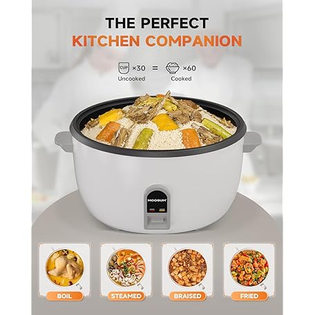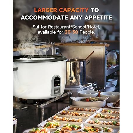 Commercial Rice Cooker, Large Capacity 30-Cup (UnCooked), 60-Cup (Cooked) with One Touch Operation and 12-Hour Keep Warm, Easy to Use and clean,1600W