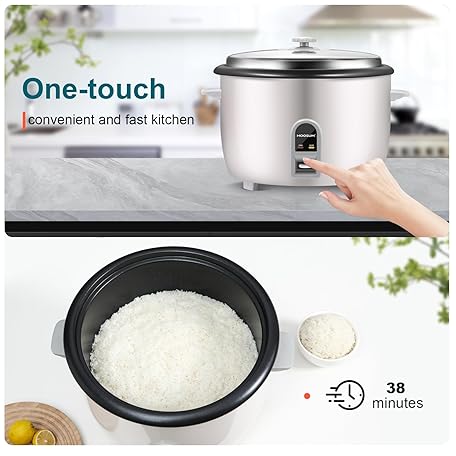 Thông tin sản phẩm Commercial Rice Cooker, Large Capacity 30-Cup (UnCooked), 60-Cup (Cooked) with One Touch Operation and 12-Hour Keep Warm,Easy to Use and clean,1600W, Pearl