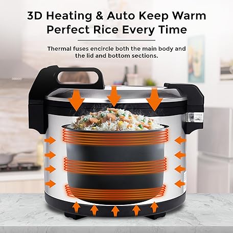 Sản phẩm Commercial Stainless Steel Rice Cooker - Professional 64 Cup Cooked (32 Cup Uncooked) Rice Maker Cooker With Non Stick Pot & Hinged Lid - Includes a Rice Measuring Cup & Rice Scoop đang được bán với giá ưu đãi là $196.2 tại nước Mỹ.