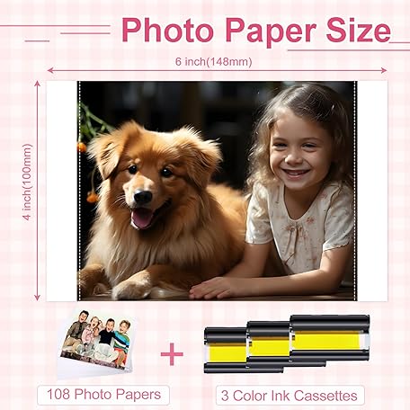 Compatible for Canon Selphy CP1500 CP1300 Ink and Paper 4x6 KP-108IN KP108IN Compatible with Selphy CP CP910 CP780 CP760 CP1200 CP740 CP1000 Printer 108 Sheets Photo Paper 3 Color Ink Cartridges Set