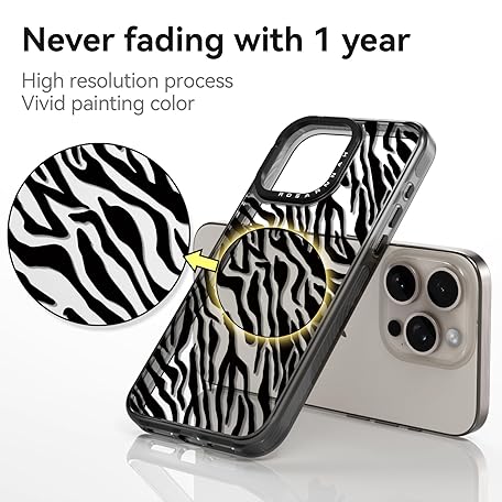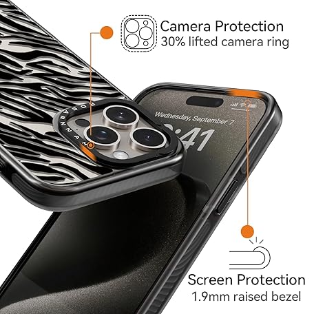 Compatible for iPhone 15 Pro Max Case Cute Aesthetic - Durable Shockproof 6.6 ft Drop Impact Phone Case Cover with Funny Fashion Black Zebra Print 6.7" Black