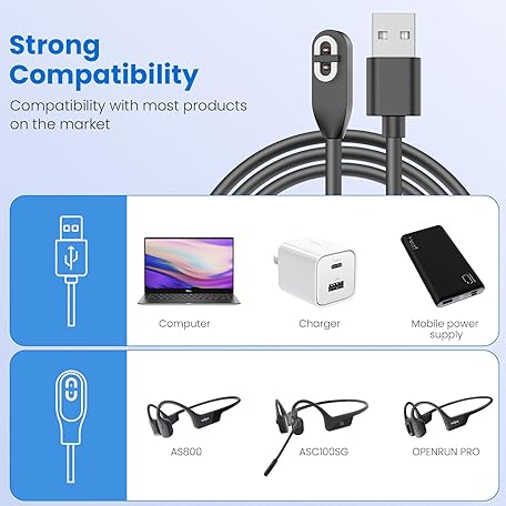Thông tin sản phẩm Compatible for Shokz Charging Cable,Charger Cord Compatible for Aftershokz Aeropex AS800,Shokz OpenRun Pro,OpenRun,OpenRun Mini,OpenComm Bone Conduction Headphones 3.3ft 2 Pack