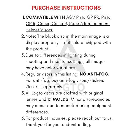 Thông tin sản phẩm Compatible with AGV Pista GP RR Visor Pista GP R, Corsa, Corsa R, Race 3 Replacement Motorcycle Face Shield Anti-Scratch UV Protection Quick Release Accessory (Smoke)