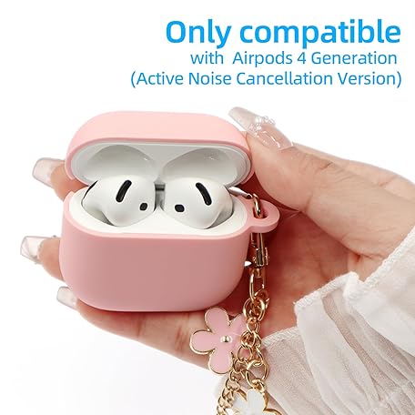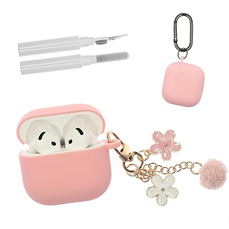 Compatible with AirPods 4 Case, Premium Soft Silicone Protective Case Cover for Apple AirPods 4th Generation with Cleaner Kit Keychain Accessories for Women Girls (Pink, for AirPod 4 case)