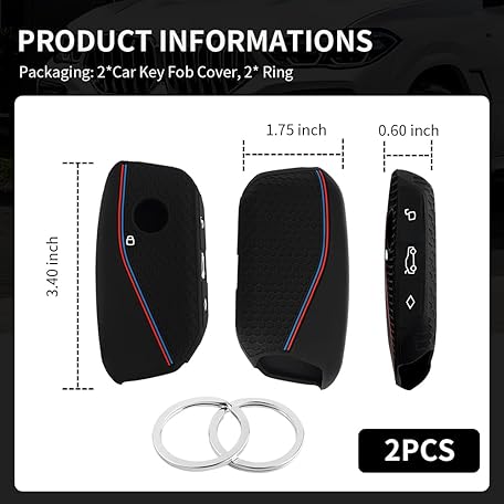 • Compatible with BMW Key Fob Cover,2PCS Car Key Fob Protector with 2PCS Rings Reduces Key Scratches,Silicone Car Key Cover