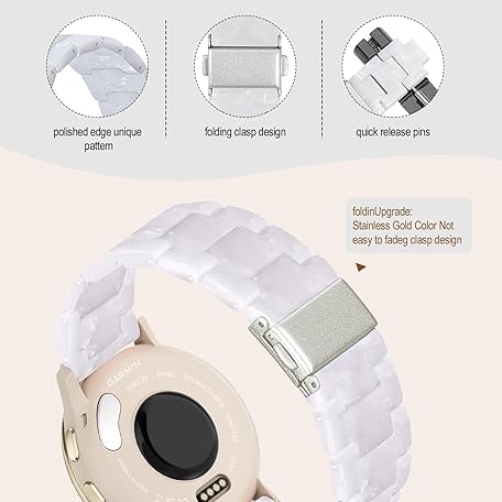 Thông tin sản phẩm Compatible with Garmin Venu 3s Watch Band Resin, 18mm Strap Compatible for Garmin Venu 4 41mm/Venu 2s/Forerunner 265s/255s/Vivoactive 4s Wristband Bracelet Replacement with Stainless Steel Buckle