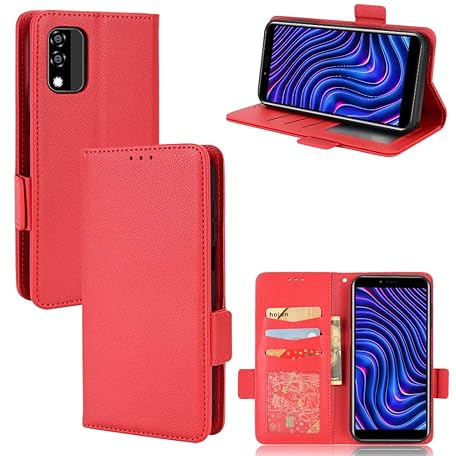 Compatible with Rakuten Hand 5G Case,PU Leather Kickstand with Card Holders Compatible with Rakuten Hand 4G Flip Magnetic Closure Wallet Cover Red