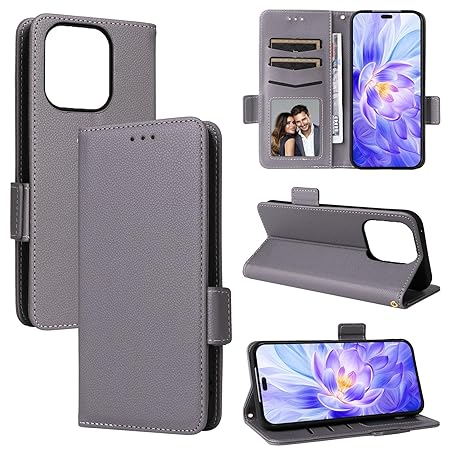 Compatible with Rakuten Hand 5G Cover,Compatible with Rakuten Hand 【PU Leather+Shell】 Card Holder Flip Stand Magnetic Closure Grey