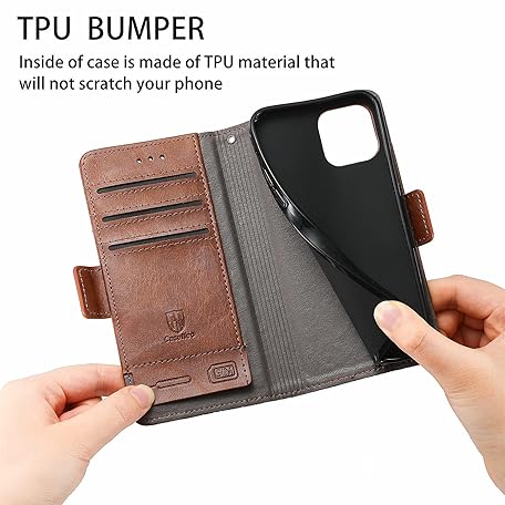 Compatible with Rakuten Hand Case,Compatible with Rakuten Hand 5G Flip Magnetic Clasp Wallet Card Holder Stand Cover Brown