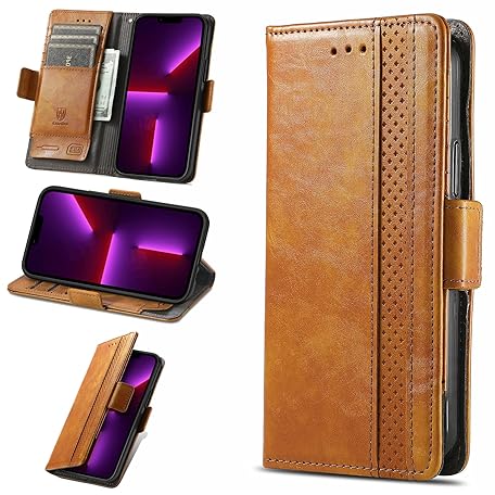 Compatible with Rakuten Hand Case,Compatible with Rakuten Hand 5G Flip Magnetic Clasp Wallet Card Holder Stand Cover Khaki
