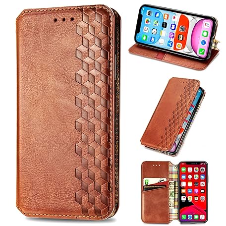 Compatible with Rakuten Hand Case,Compatible with Rakuten Hand 5G Stand Card Slots Flip Magnetic Closure Wallet Brown