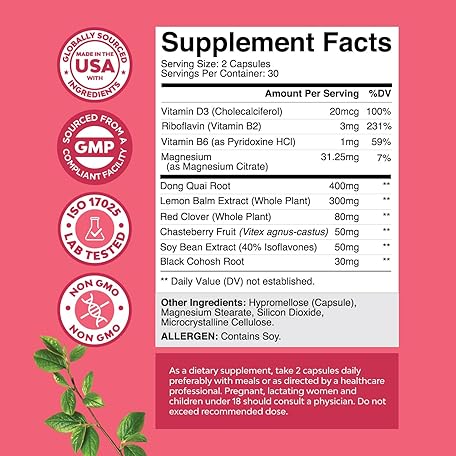 Thông tin sản phẩm Complete Herbal Menopause Supplement for Women - Female Hormone Balance Capsules for Night Sweats Hot Flashes & Mood Swings with Dong Quai, Chaste Berry & Black Cohosh Root - 60 Count Pack