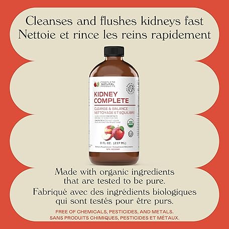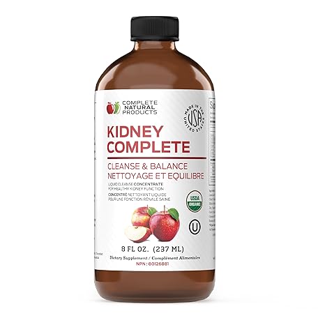 Thông tin sản phẩm Complete Natural Products Kidney Complete - 8oz Organic Liquid for Kidney Support, Cleanse, and Detox with Apple Cider Vinegar, Lemon, & Organic Chanca Piedra.