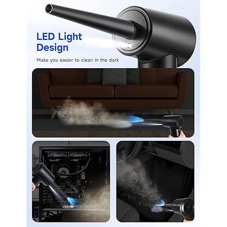 Thông tin sản phẩm Compressed Air Duster,Fulljion 3-Gear to 51000RPM Electric Air Duster Portable Air Blower with LED Light, 6000mAhRechargeable Cordless Air Duster for Computer Keyboard Fast Charge(Black)