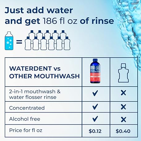 Sản phẩm Concentrated Water flosser Rinse & mouthwash Gum Care| Add to Water Flosser & Oral irrigator | Apple Mint| Pack of 1 = 16.9 fl.oz | Alcohol Fluoride Free, Made in USA | WATER DENT đang được bán với giá ưu đãi là $31.065 tại nước Mỹ.