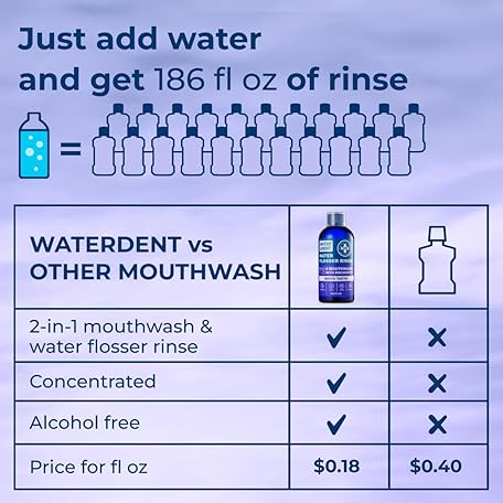Thương hiệu WATER DENT là cái tên nổi tiếng được rất nhiều khách hàng trên thế giới chọn lựa. Với kiểu dáng đẹp mắt, sang trọng, sản phẩm Concentrated Water flosser Rinse & mouthwash Teeth WHITENING | Add to Water Flossers| Fruit Flavor | 2 Pack = 33.8 fl.oz | Peroxide Free. Made in USA là sự lựa chọn hoàn hảo nếu bạn đang tìm mua một món cho riêng mình.