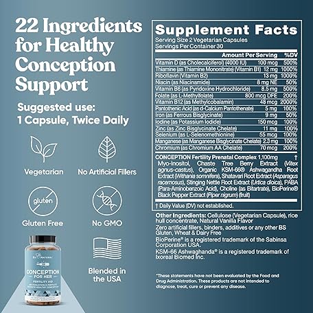 Thông tin sản phẩm Conception Fertility Supplements for Women – Aids Ovulation, Hormonal Balance, & Regular Cycles – Prenatal Vitamin Support with Myo-Inositol, Folate, Folic Acid, Vitex – 60 Vegetarian Soft Capsules