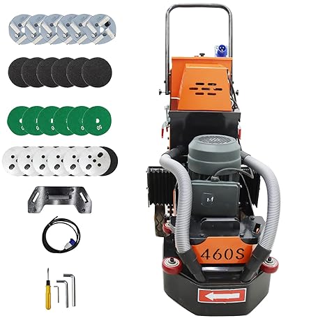 • Concrete Floor Grinder Polishing Buffer Machine Cement Ground Grinder for Epoxy Terrazzo Floor with 30L Dust Bucket 6pcs Grinding Heads 220V