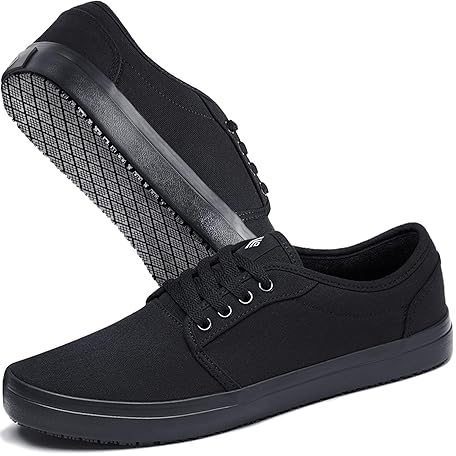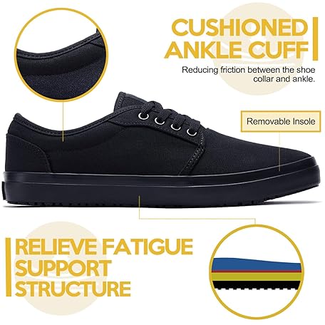 Convole Non-Slip Work Shoes, Unisex Water-Resistant Food Service Sneakers for Restaurant Server, Comfortable Black Casual Water & Oil Slip-Resistant Culinary Chef Kitchen Cook Shoes for Men & Women