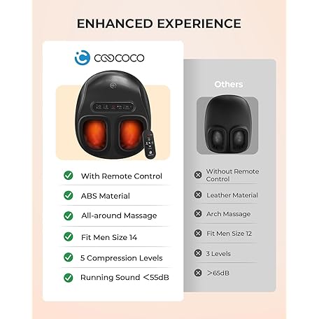Thông tin sản phẩm CooCoCo FSA Eligible Foot Massager with Heat, Upgrade ABS Feet Massager with Remote, Foot Massager for Neuropathy & Plantar Fasciitis, Foot Massage Machine with Base, Kneading Compression, Foot Warmer
