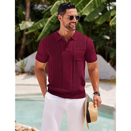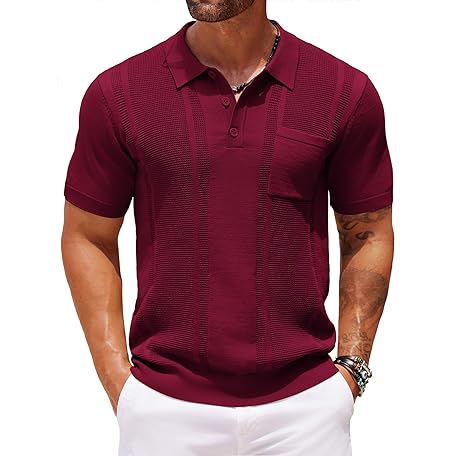 • COOFANDY Knit Polo Shirts for Men Short Sleeve Textured Polo Shirt Slim Fit Summer Collared T Shirt with Pocket