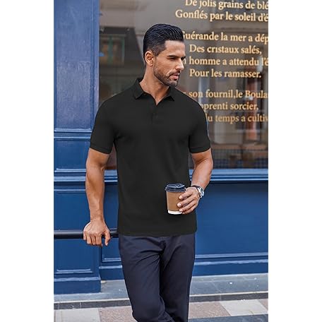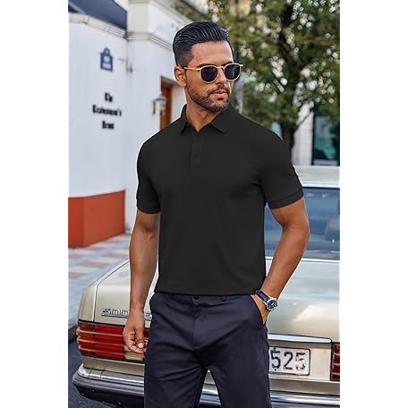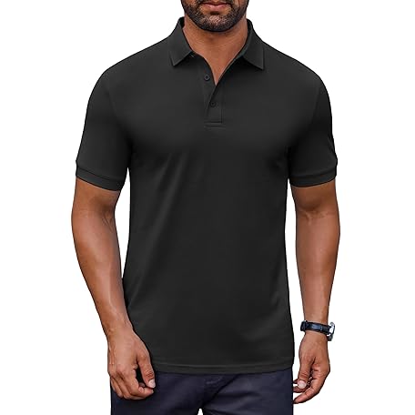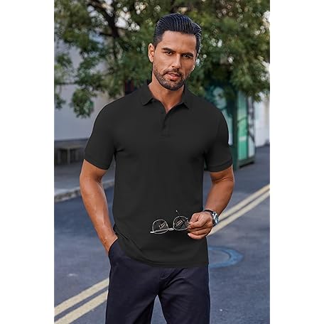 • COOFANDY Men's Cotton Pique Polo Shirts Short Sleeve Golf Shirts Basic Casual Collared T-Shirt