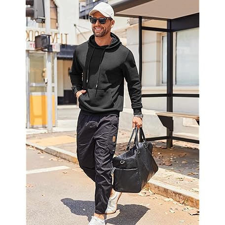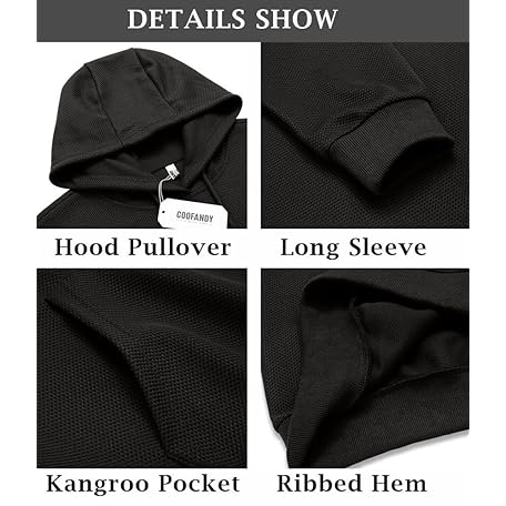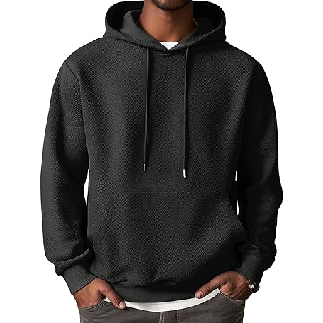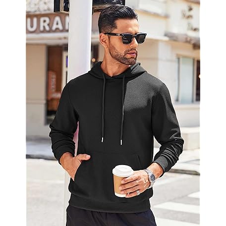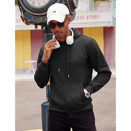 • COOFANDY Men's Hooded Sweatshirts Long Sleeve Casual Waffle Knit Pullover Hoodies with Kanga Pocket