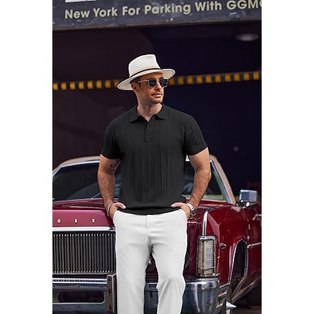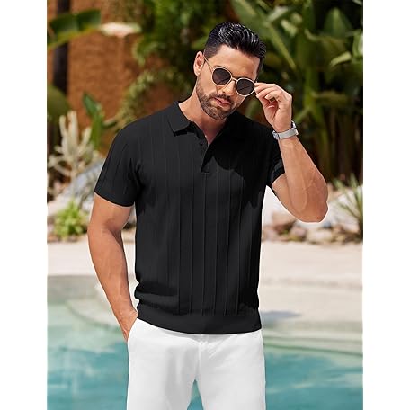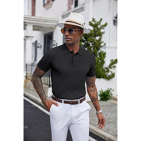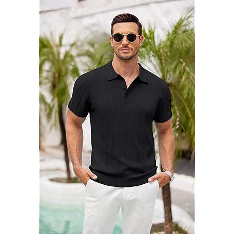 • COOFANDY Mens Knit Polo Shirts Short Sleeve Ribbed Textured Polo Shirt Lightweight Casual Golf Shirts Collared T Shirt