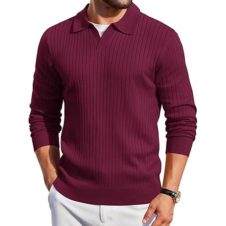 COOFANDY Mens Knit Polos Long Sleeve Casual Sweater Polos V Neck Collared Sweater Golf Polo Sweaters and Pullovers
