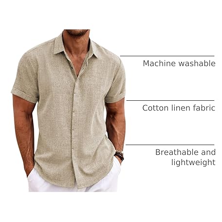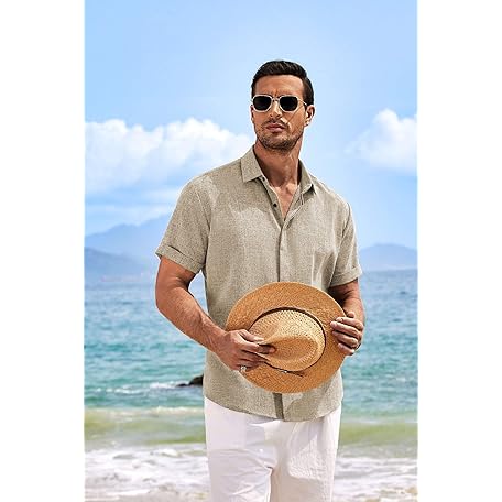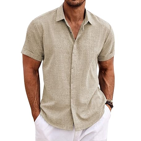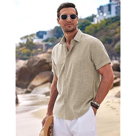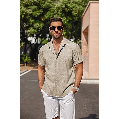 • COOFANDY Men's Linen Shirts Short Sleeve Casual Shirts Button Down Shirt for Men Beach Summer Wedding Shirt