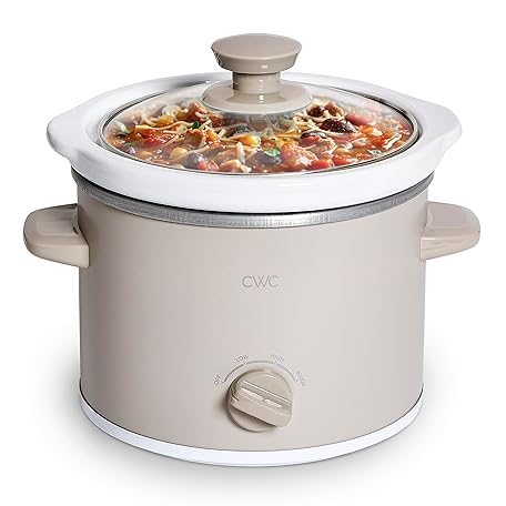 COOK WITH COLOR 2QT Mini Electric Round Slow Cooker - Adjustable Settings, Removable Stoneware Pot, Tempered Glass Lid, Dishwasher Safe, Cool-Touch Side Handles, Sand